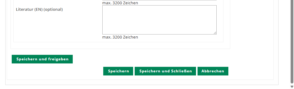 Wenn die Überarbeitung abgeschlossen ist, klicken Sie bitte auf „Speichern und freigeben“. Erst durch die Freigabe ist eine Beschreibung für Studierende sichtbar.